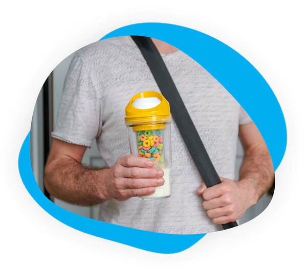 Whether you're sitting on the couch, at your desk, or on the move, you can enjoy your cereal anywhere with this dual-chambered, reusable, dishwasher safe tumbler made of durable, BPA-free plastic.