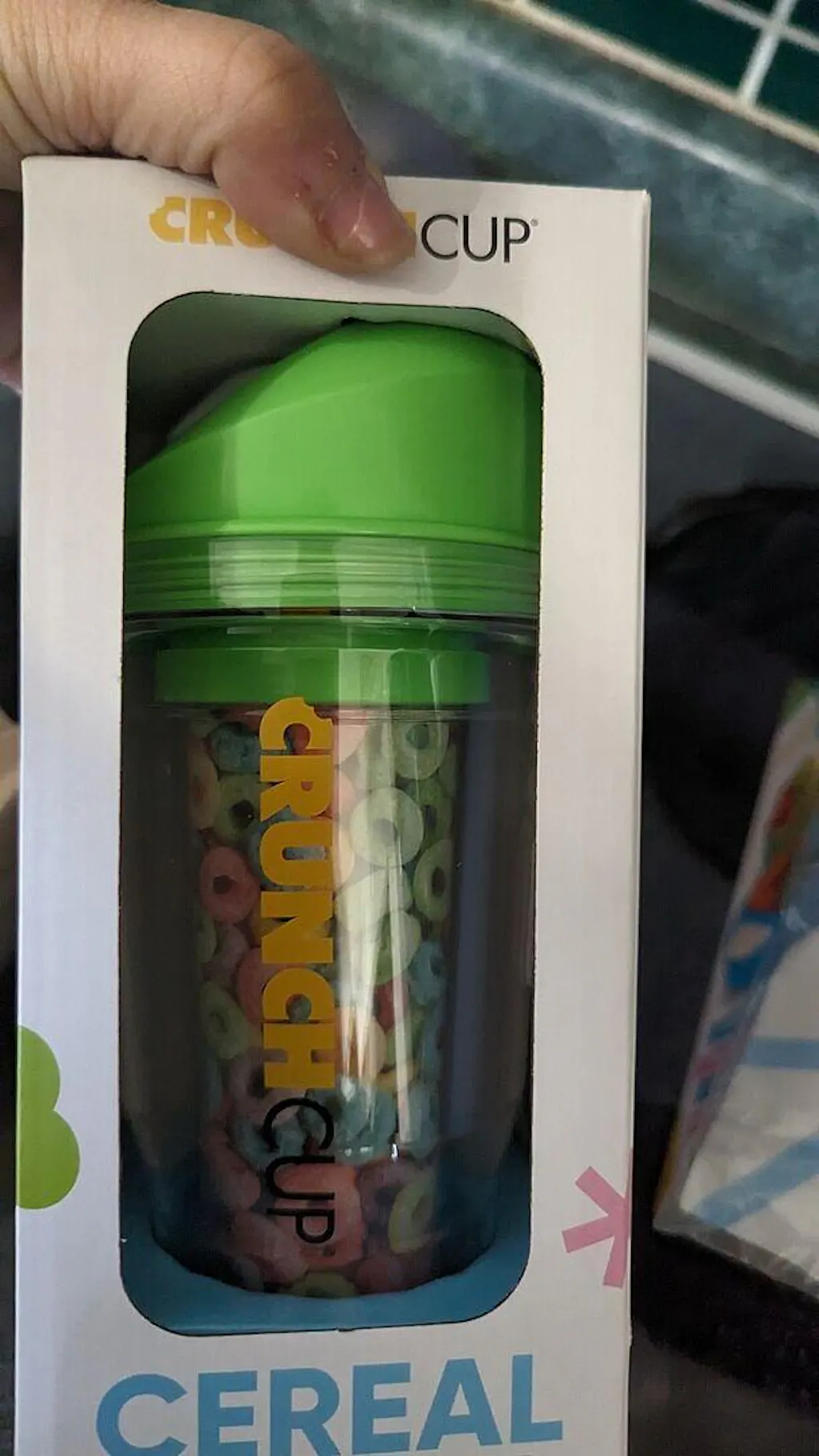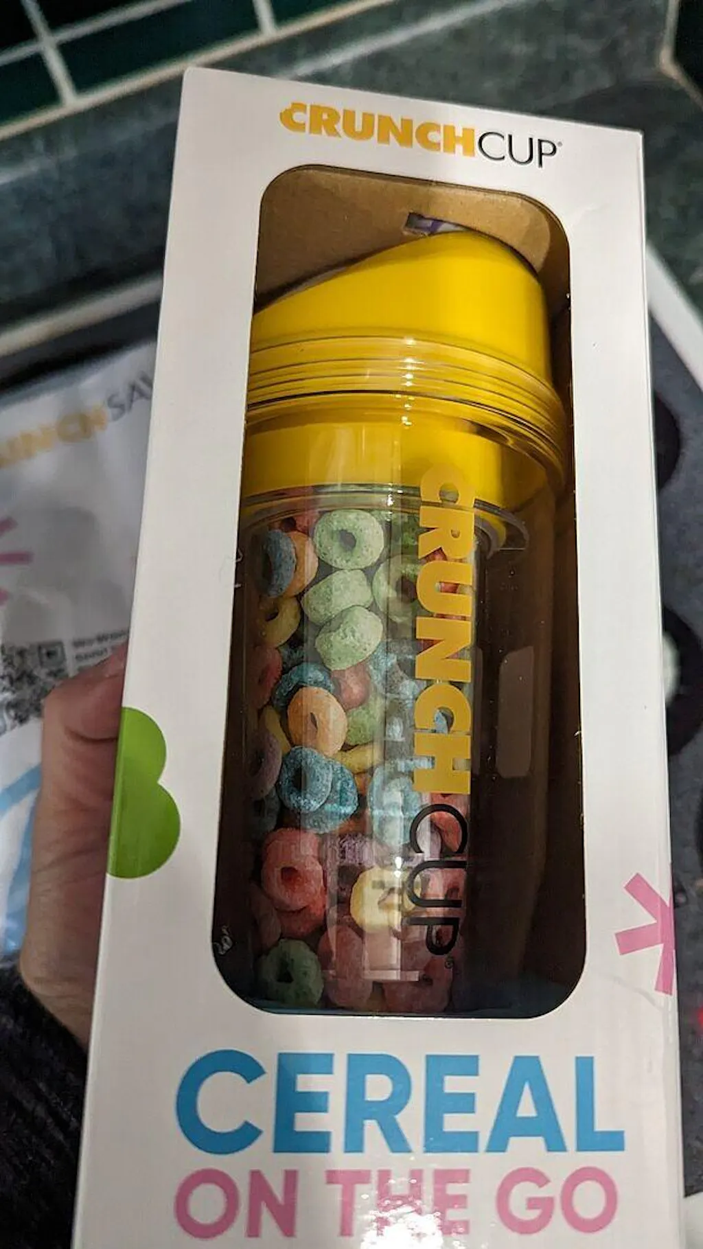 Say goodbye to soggy cereal, The CrunchCup® keeps your cereal crunchy. Simply add cereal to the inner cup, milk into the outer cup, screw on the lid, and you're ready to crunch. The milk and cereal don't meet until it's time to eat. See How it Works