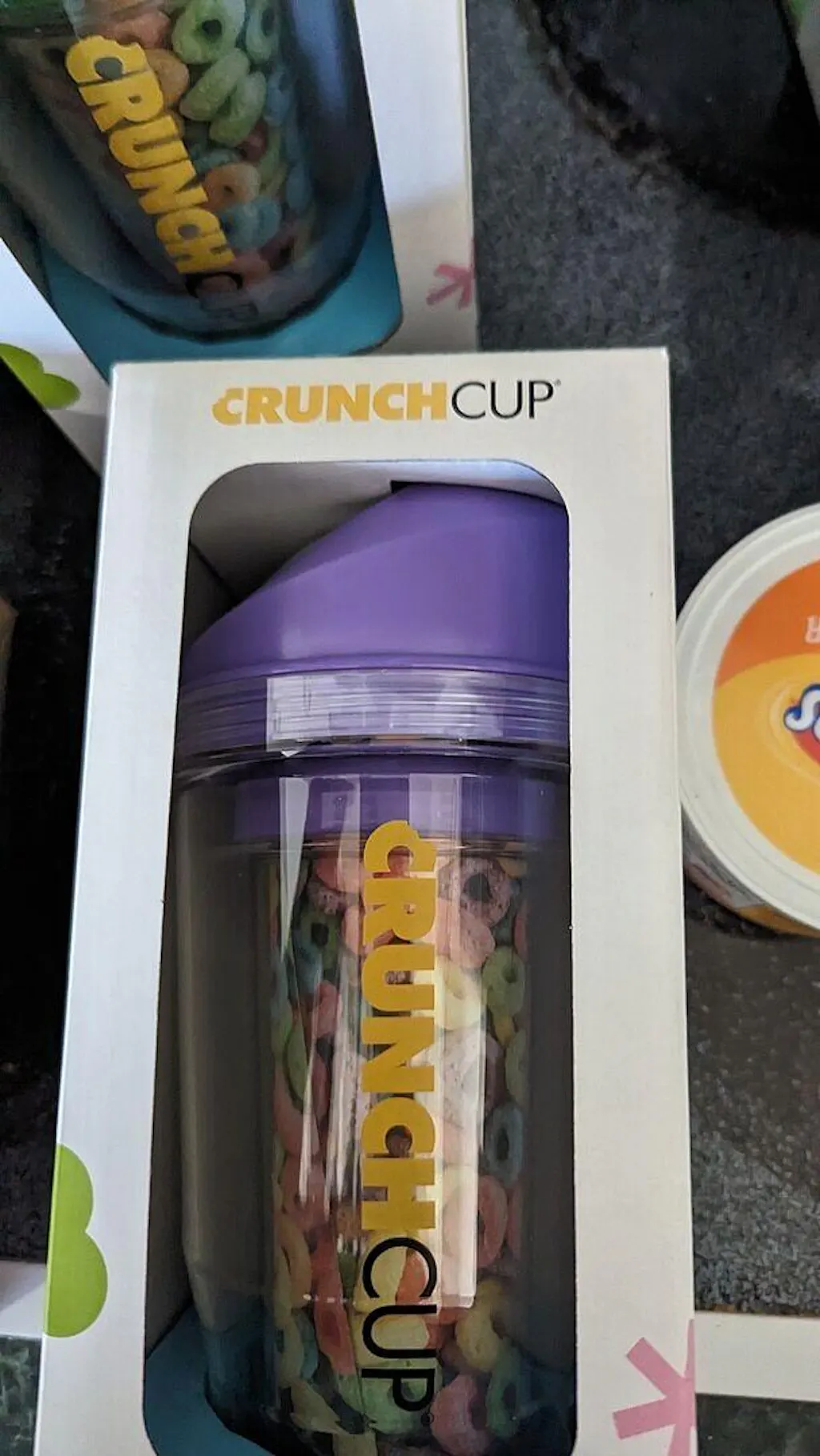 Ditch the spoon and bowl and take your cereal on-the-go with The CrunchCup®. Whether you're sitting on the couch, at your desk, or on the move, you can enjoy your cereal anywhere with this dual-chambered, reusable, dishwasher-safe tumbler made of durable, BPA-free plastic.