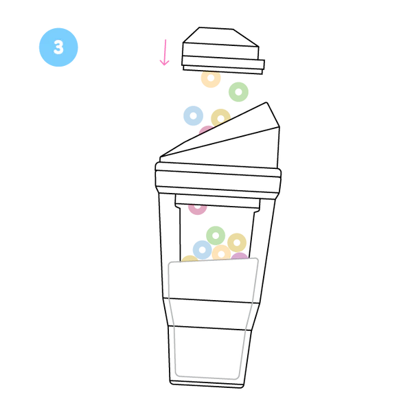 This can be done two different ways. One is to put your finger over the tiny breather hold on the lid. The second is to partially cover the milk spout with your lower lip as the milk is coming out. This will ensure you get the right ratio of cereal to milk every time.
